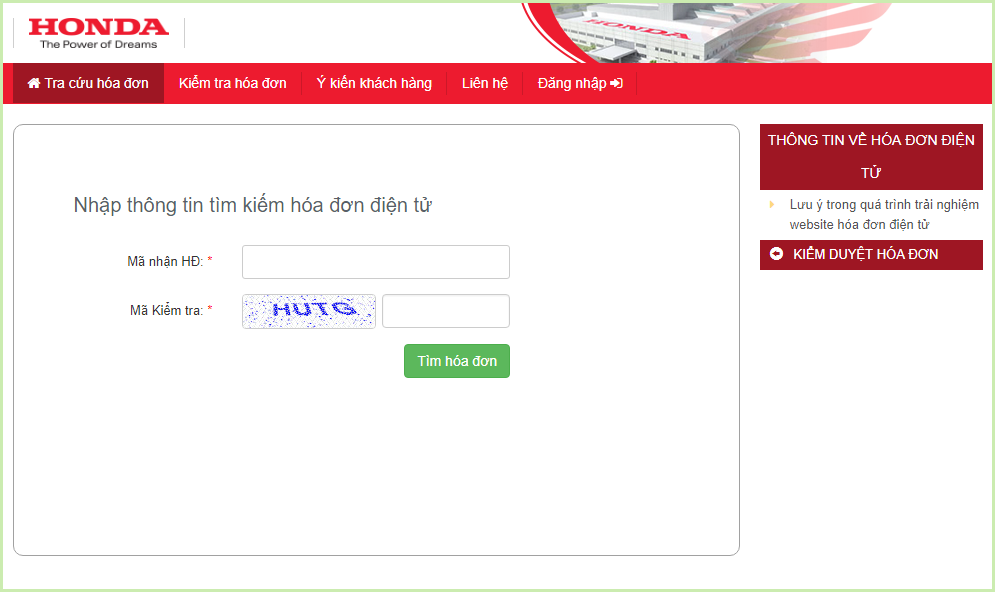 Website tra cứu hóa đơn điện tử Công ty Honda Việt Nam