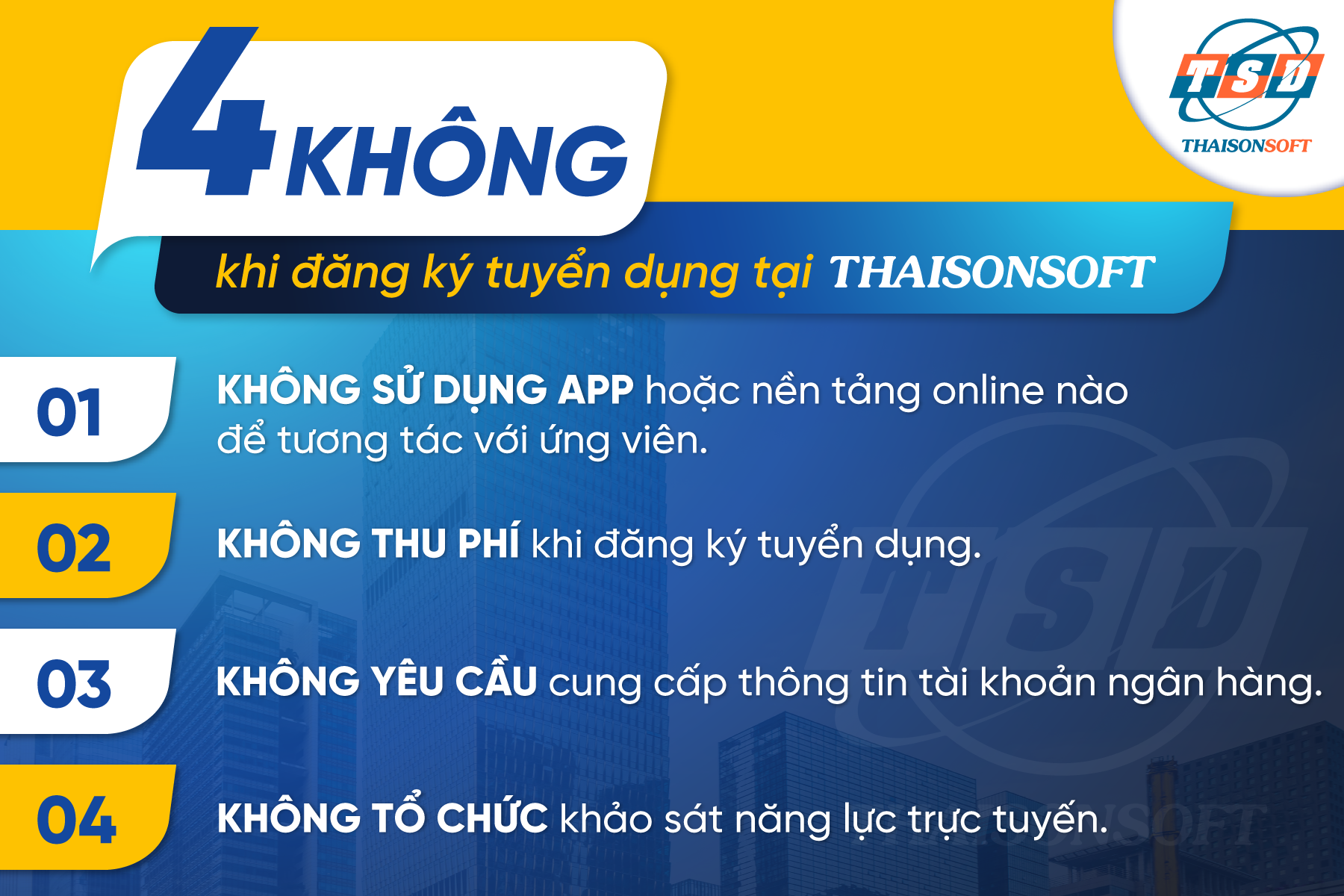 Sơn – ThaisonSoft khẳng định “4 KHÔNG” trong hoạt động tuyển dụng nhân sự tại