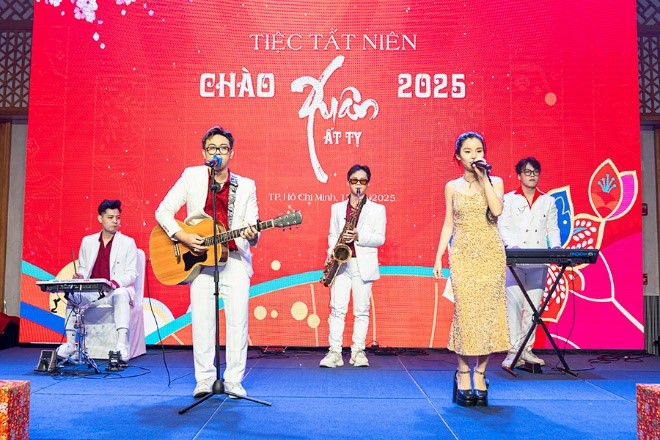 Ban nhạc khách mời biểu diễn những tiết mục nghệ thuật đặc sắc tại tiệc tất niên chi nhánh Miền Nam